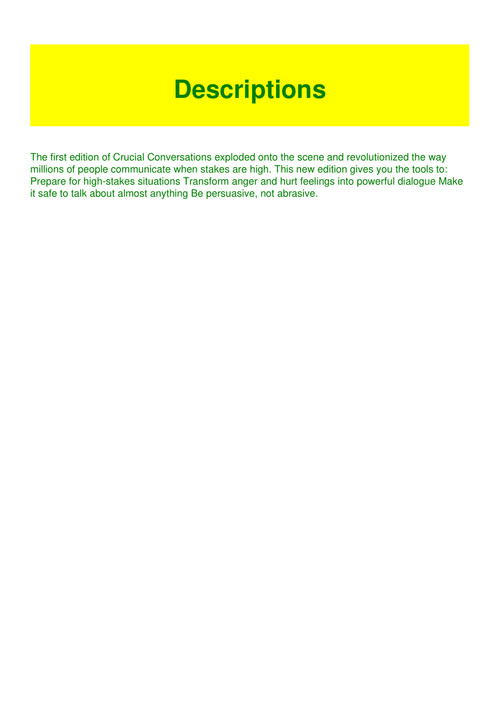 Crucial Conversations Tools For Talking When Stakes Are High Second