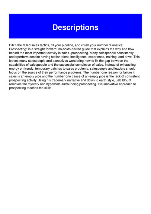 Pdf Fanatical Prospecting The Ultimate Guide To Opening Sales