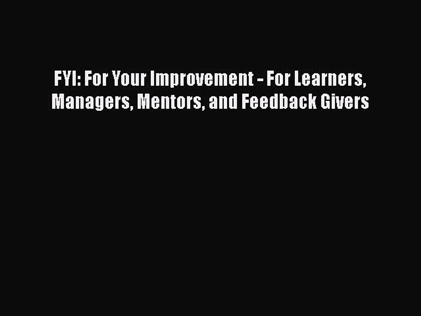 Pdf Fyi For Your Improvement For Learners Managers Mentors And Feedback Givers Read Video Dailymotion