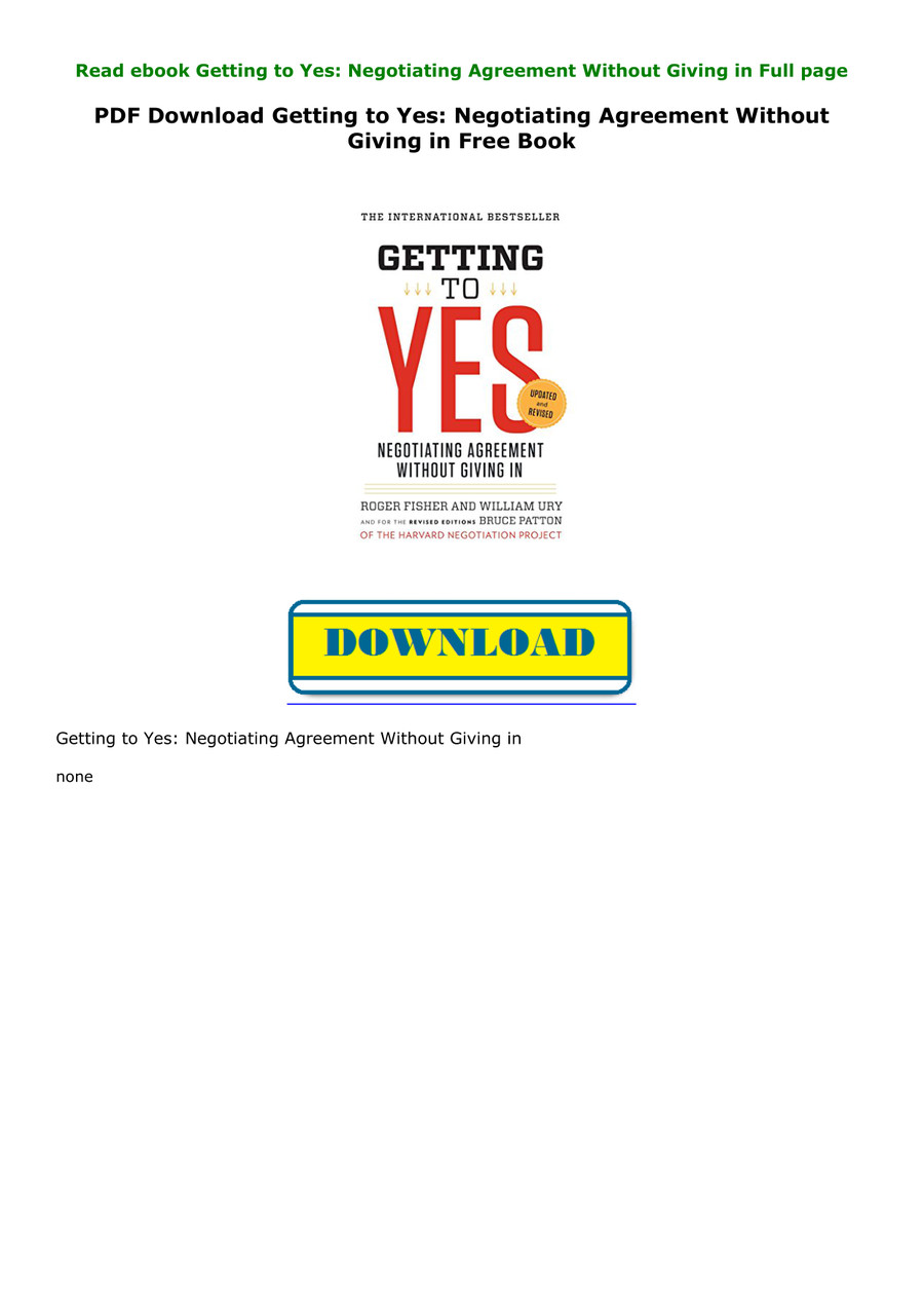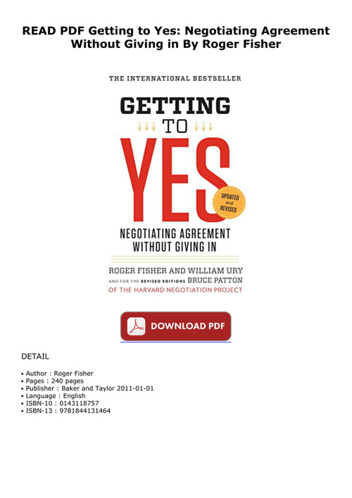 Getting To Yes Negotiating An Agreement Without Giving In By