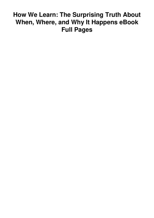 How We Learn Benedict Carey Pdf The Surprising Truth About When