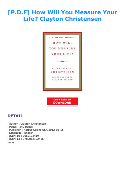 Jual Buku How Will You Measure Your Life Di Lapak Mister Big Mr Conz