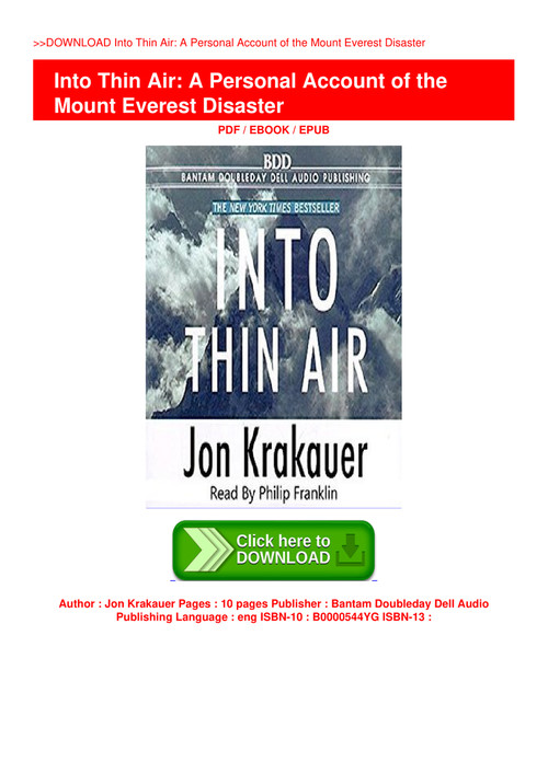 Pdf Download Into Thin Air A Personal Account Of The Mount