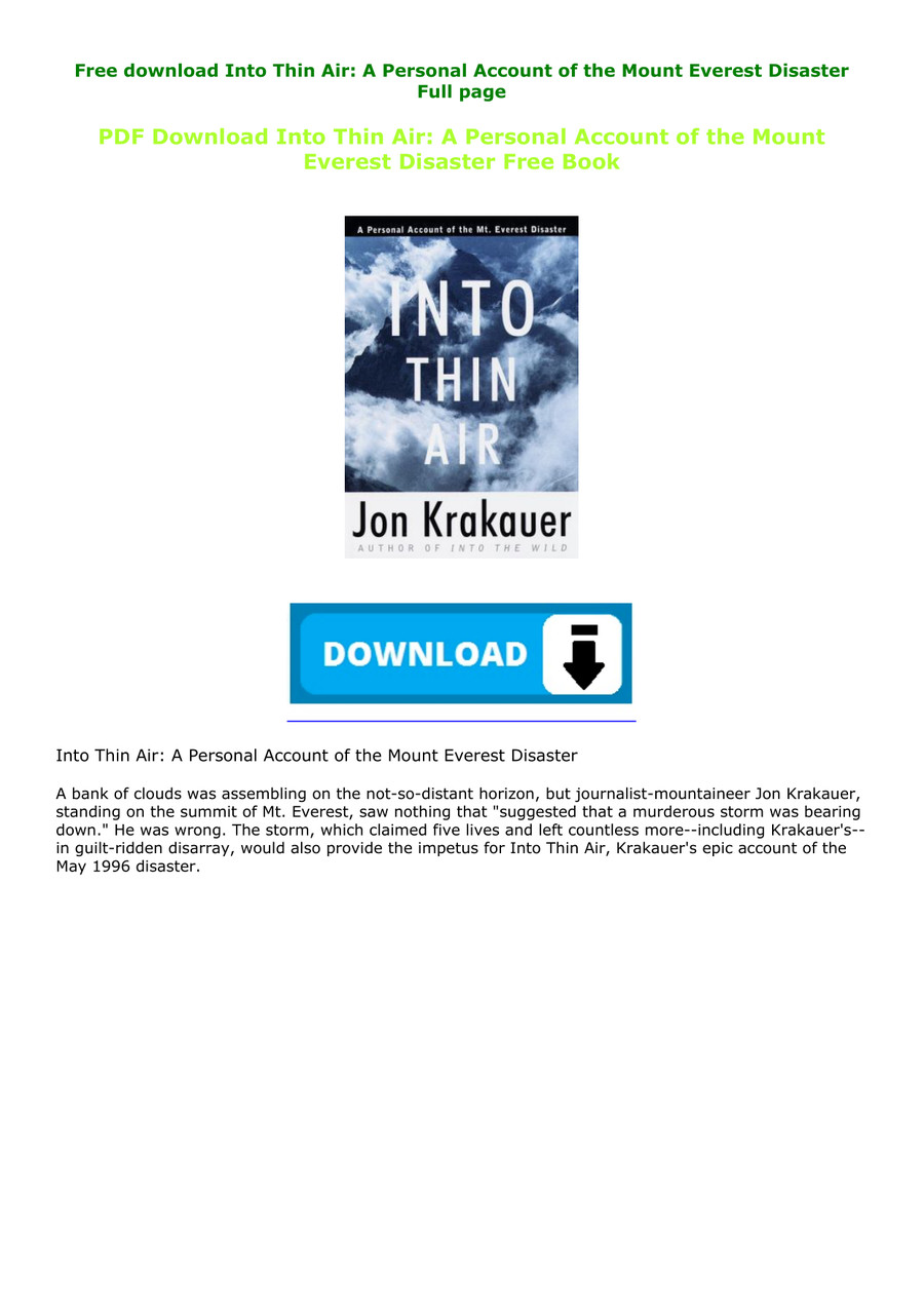 Pdf Free Into Thin Air A Personal Account Of The Mount Everest