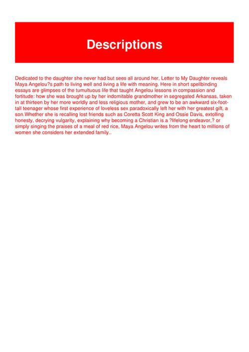 Read Pdf Letter To My Daughter By Maya Angelou