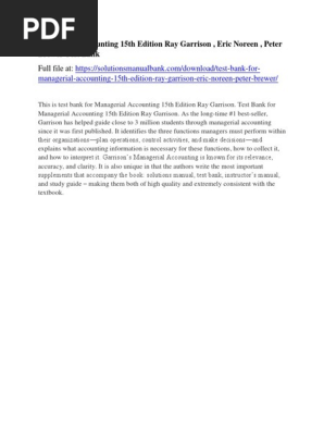 Garrison Ray Noreen Eric Brewer Peter Managerial Accounting