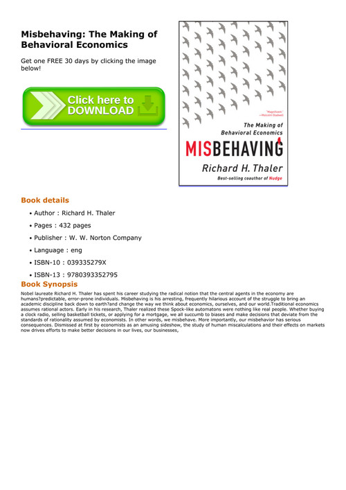 Misbehaving By Richard H Thaler Pdf Download Ebookscart