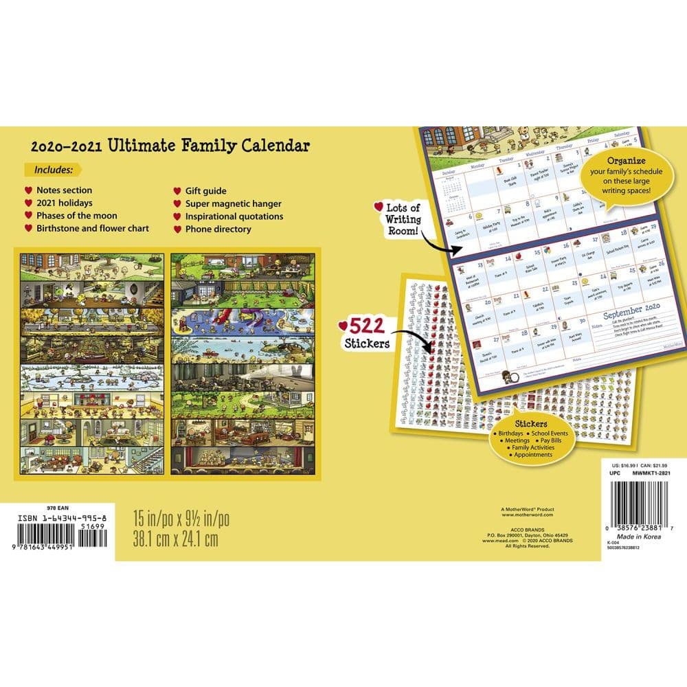 Motherword Ultimate Family Wall Calendar 16 Month Sept 2018 Dec