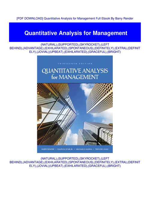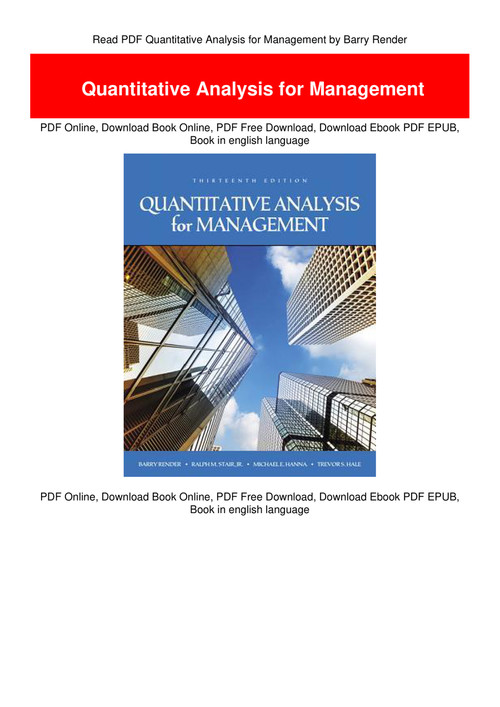 Pdf Download Quantitative Analysis For Management Full Ebook By Barry Render
