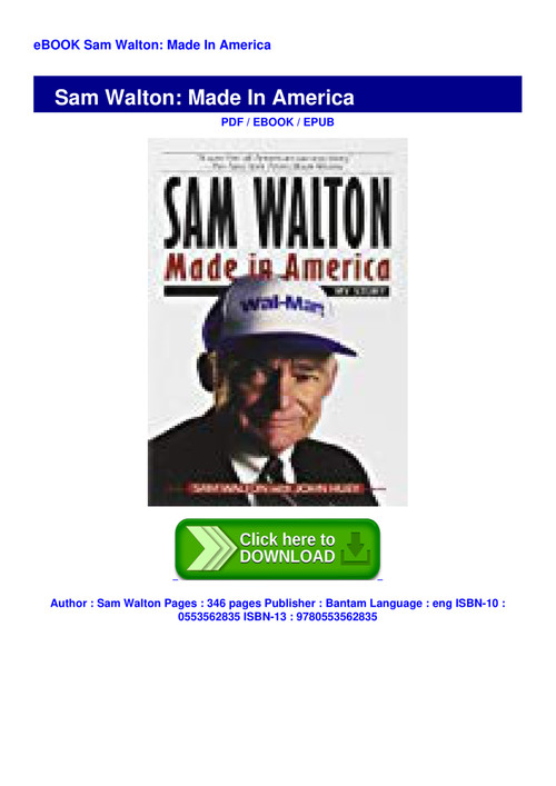 My story by john huey and sam walton 1992 hardcover at the best online prices at ebay. Before his death sam walton admitted in his autobiography ironically titled made in america that wal mart was a huge purchaser of imported merchandise from overseas he said wal mart had no choice because a lot of america made goods simply arent competitive either in price or quality or both that was in 1992. Sam walton is one of the greatest retailers and entrepreneurs in the history of america. Walton in his death bed dictating this little book of wisdom.