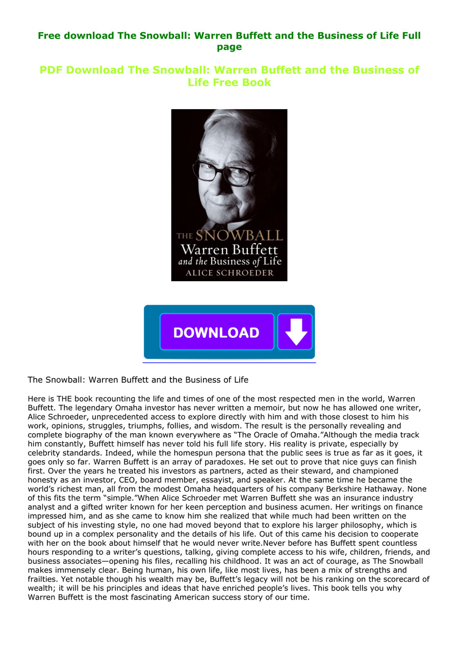 Download Ebook The Snowball Warren Buffett And The Business Of