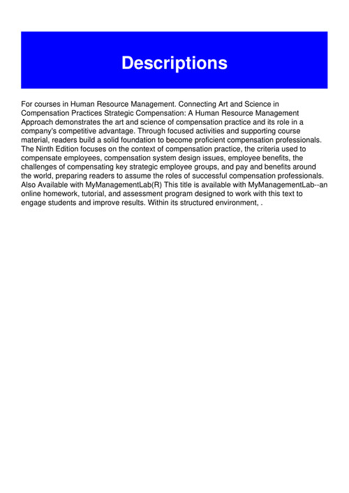Read Strategic Compensation A Human Resource Management Approach