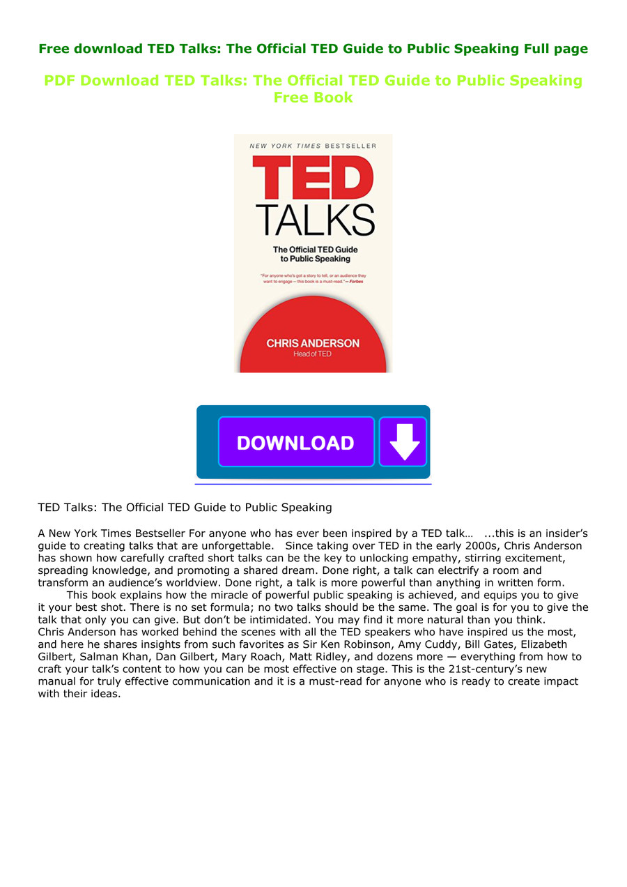 Epub Kindle Ted Talks The Official Ted Guide To Public Speaking Ebook