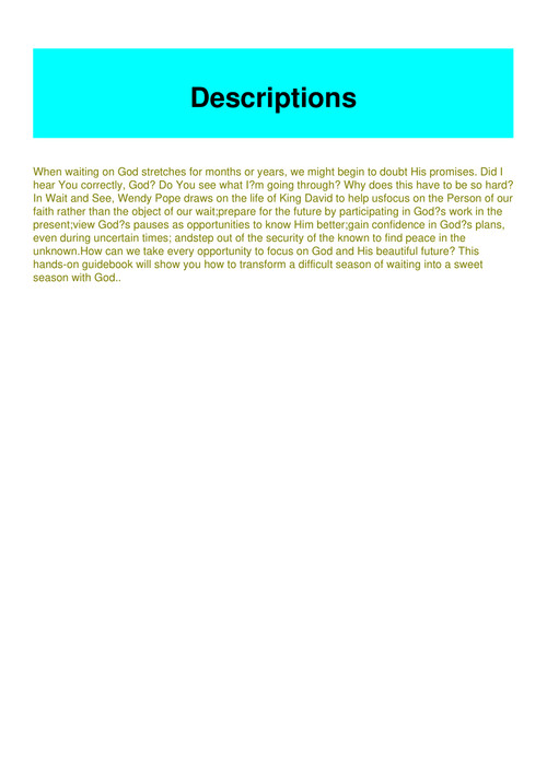 Wait And See Finding Peace In God S Pauses And Plans By Wendy