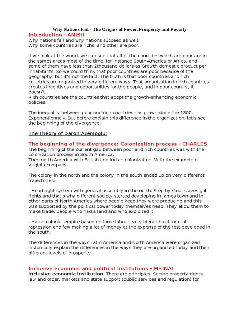 Why Nations Fail The Origins Of Power Prosperity And Poverty